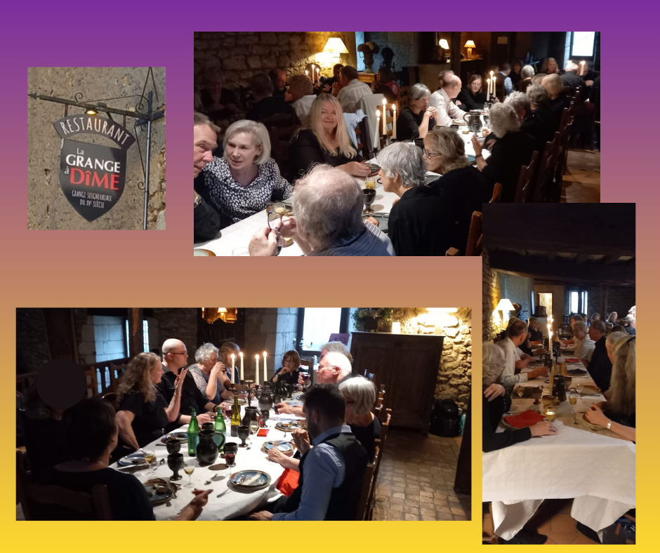 So that was the music but the choir did more than that. After the champagne reception we all walked across the drawbridge from the castle to the Restaurant La Grange à Dîme which is a medieval themed restaurant where we enjoyed traditional fouées with wine.